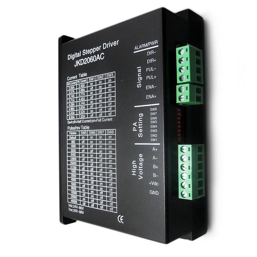 JKD2060AC is a new generation digital 2- phase stepper motor driver, based on a 32-bit DSP processor, combination of the anti-resonance, low noise, micro-step and low temperature rise technology significantly improve the performance of the stepper