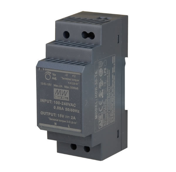 Napajanje za DIN šinu Mean Well HDR-15-12 serije HDR od 15W, izlaznog napona 12V i maksimalne struje do 1.25A. Garancija 3 godine.