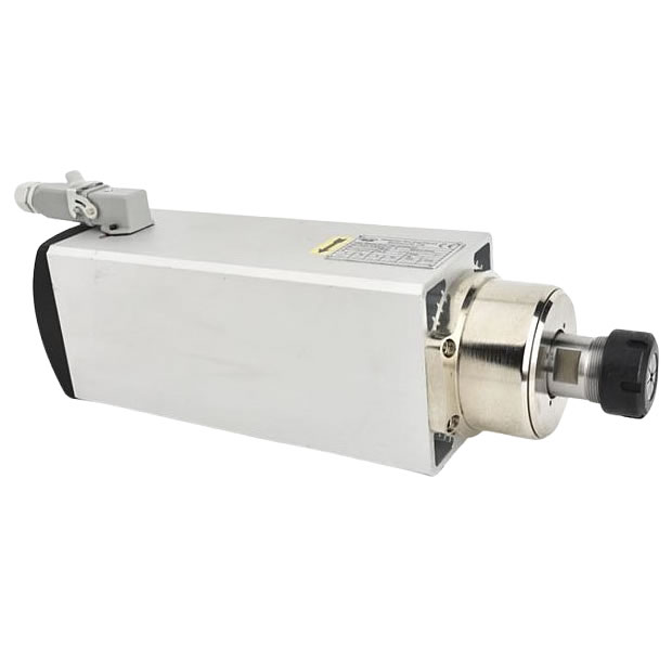 Obradna glava sa vazdušnim hlađenjem od 7.5kw, četvrtasta sa flanšom i izbušenim rupama za montažu, ER32 prihvat sa maksimalnim prečnikom glodala do 20mm, 4 ležaja, maksimalne brzine 18000 o/min, 300Hz, 380v